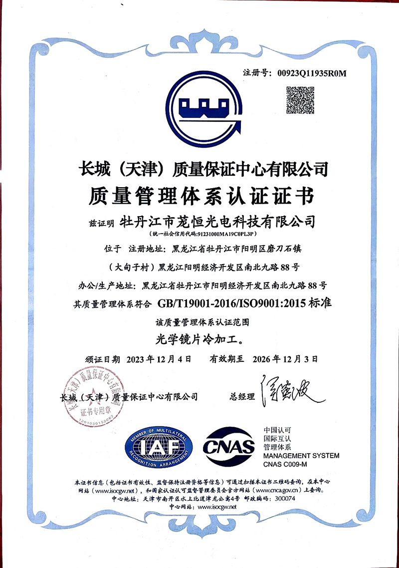 質(zhì)量體系-牡丹江市蘢恒光電科技有限公司